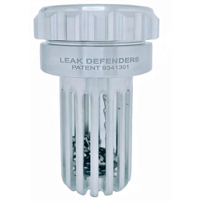 The Leak Defender® + Anti Siphon is a 3-piece fuel tank adapter system, consisting of a collar, cap and Anti Siphon which creates a completely NEW sealing surface and replaces your old, worn fuel neck. And, yes, this will attach to a fuel neck where the threads are completely worn and fuel caps no longer seal. In fact, this is why we invented the product! These fuel cap replacements are for anyone who has ever had a problem with their current gas cap not sealing, or worse yet, leaking. The Leak Defender® collar attaches to and replaces your old, worn fuel neck. It has an o-ring underneath which seals to your existing fuel neck when tightened with a strap wrench and is securely fastened with set screws. It is sealed along the outer perimeter, away from the inner perimeter which is prone to wear and tear from everyday fueling. Our innovative fuel cap replacements will ensure a safe and tight seal on your gas tank, every time. It’s machined from billet aluminum allowing it to be made with a high degree of precision and with the strength to withstand the wear and tear of everyday fueling. Can your old, worn-out fuel neck say the same? Discover for yourself how our fuel cap replacements for Peterbilt, Kenworth, International, and more can give you the peace of mind that comes with knowing your gas tank will be sealed shut, no matter what.