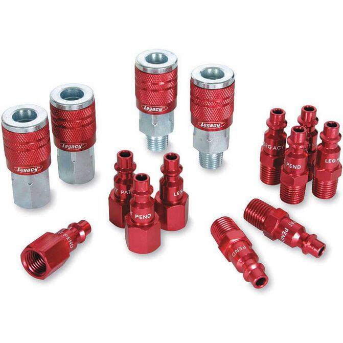 LEGACY MANUFACTURING Colorconnex 1/4"NPT Coupler & Plug Kit - Red (14 Pieces)