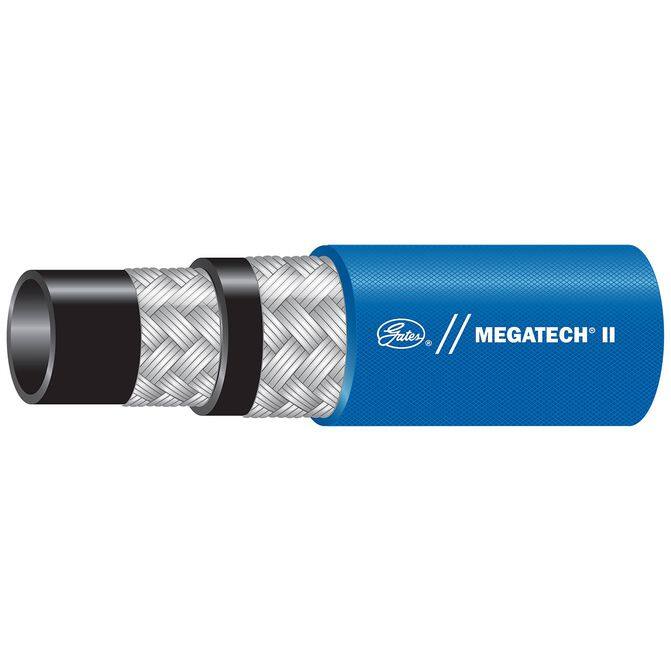 • MegaTech II hose is recommended for multi-purpose high-pressure, high-temperature, air compressor lines, petroleum-base or phosphate ester hydraulic fluid supply lines.
