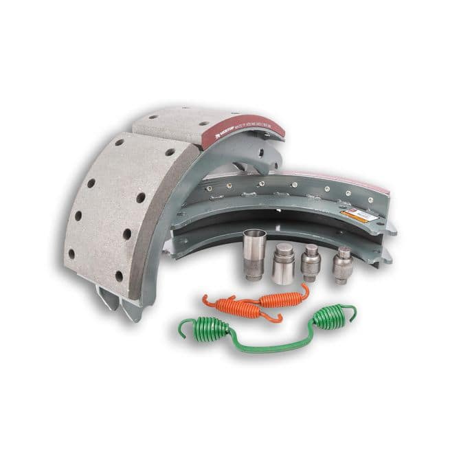 Boost the integrity of your truck's brake drum to be Ready for the Road Ahead™, with the Meritor Relined Brake Shoe Kit 21K GAWR. To fully restore a brake drum so it can once again generate friction and slow a vehicle, this replacement kit includes all of the necessary components for a rebuild. Built with a self-adjustment mechanism to provide long-term reliability and enhanced responsiveness. FleetPride is your First Click in Heavy Duty®. - Asbestos-free wear surface and backing layer