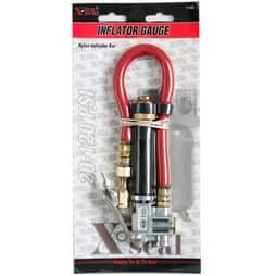 Product Details: The Milton 15" Hose 10-160 psi Straight Foot Chuck Tire Inflator Gauge is the perfect tool for your vehicle trunk or garage. This essential pneumatic tool is equipped with a magnifying lens for a full view of the scale and features a gauge range of 160 psi maximum. The heavy duty construction ensures a long life and both the gauge and valve cartridges are replaceable. With this tire inflator gauge, you can easily and accurately inflate your tires to the desired pressure.