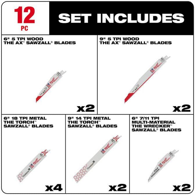 MILWAUKEE Sawzall Demolition Blade Set - 12 Pieces