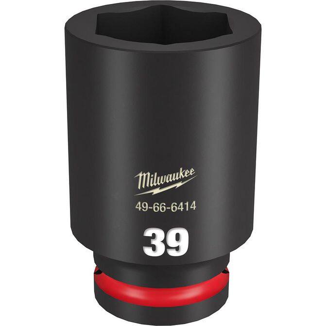 • The MILWAUKEE® SHOCKWAVE Impact Duty™ 3/4" Drive 39MM Standard 6 Point Socket features the boldest, longest-lasting markings and extreme impact durability in high torque applications. The stamped and ink-filled size marking enables an accurate socket selection every time throughout the life of the socket. Engineered with high-strength forged steel for optimized performance in heavy-duty applications, and a Nn-slip hex geometry prevents fastener rounding. The dual-hole design and ring groove allow for easy socket attachment and removal. All SHOCKWAVE Impact Duty™ Sockets are backed by a Lifetime Guarantee and meet ASME industry standards. Compatible with optional Retaining Ring (49-66-6744).