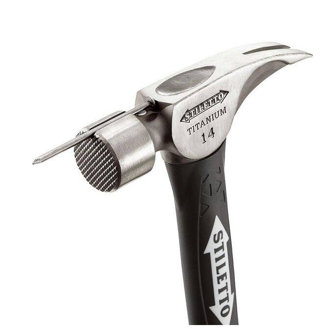 At 14 oz, this is the best weight for light or heavy framing of our solid titanium heads. The Stiletto TI14MC-F is a titanium smooth face framing hammer with an 18 in. hybrid fiberglass handle. Our new fiberglass handles are more durable, have better feel, and have more prying strength than hickory. The hammer has a straight claw design and Stiletto's signature magnetic nail starter. The TI14MC-F has the comparable striking force of 24 oz steel hammer and is recommended for residential framing and remodeling. Perfect for remodeling, framing and all-around carpentry. Stiletto Tool company has been syNnymous with high quality hand tools dating back to 1849. With our long history and strong reputation, the brand has evolved into the modern day standard for inNvative, lightweight, ergoNmic, productive, and professional tools. We set the standard with our line of premium titanium hand tools that span numerous trades such as framing, remodeling, finish work, siding, demolition, concrete, and drywall. Titanium is 45% lighter weight while providing the same striking force and strength as steel. Titanium tools also produce 10 times less recoil shock which helps reduce carpal tunnel syndrome. The combination of these features means less down time, more productivity, and most importantly less pain while working.