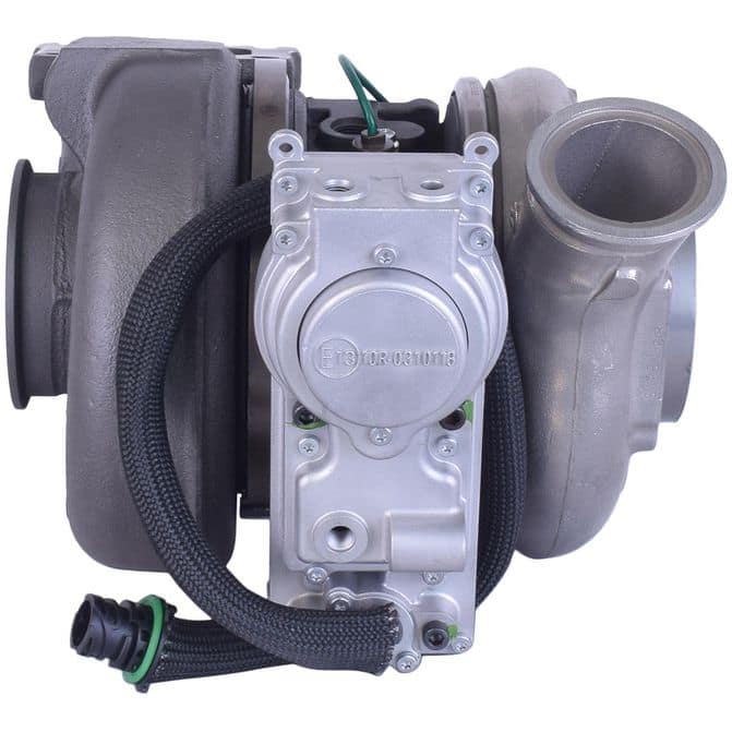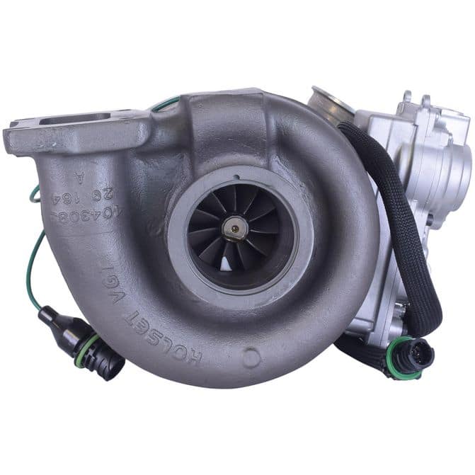 The OE-TurboPower Reman Turbocharger ensures you are Ready for the Road Ahead™, featuring a compressor and turbine wheels that are rigorously tested to guarantee the housings can contain any projectiles produced during engine charge. The bearing housing piston ring bore is also gaged to ensure the bore dimension is within specification, preventing oil leaks that can lead to oil residue build-up inside the turbo. Eliminate calibration issue work with this complete unit, including electronic actuator, where applicable. This heavy duty turbo charger is balanced at both the component and core assembly levels to ensure long-lasting durability for your truck motor. FleetPride is your First Click in Heavy Duty®. - Completely remanufactured electronics in the USA