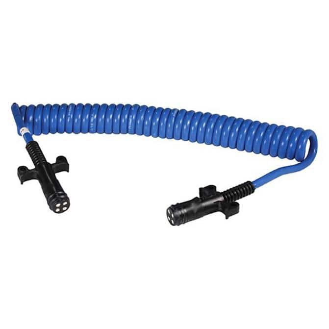 The Phillips 12' Coiled 4-Way Light Duty Cable is the perfect solution for light duty towing applications such as boats and utility trailers. These cables are designed to be flexible and durable, with a temperature range of -87 °F to 150 °F. The plugs are molded for moisture and corrosion resistance, making them ideal for outdoor use. With a 12' length, these cables are perfect for a variety of towing applications. FleetPride is your First Click in Heavy Duty®. - Plugs are molded for moisture and corrosion resistance