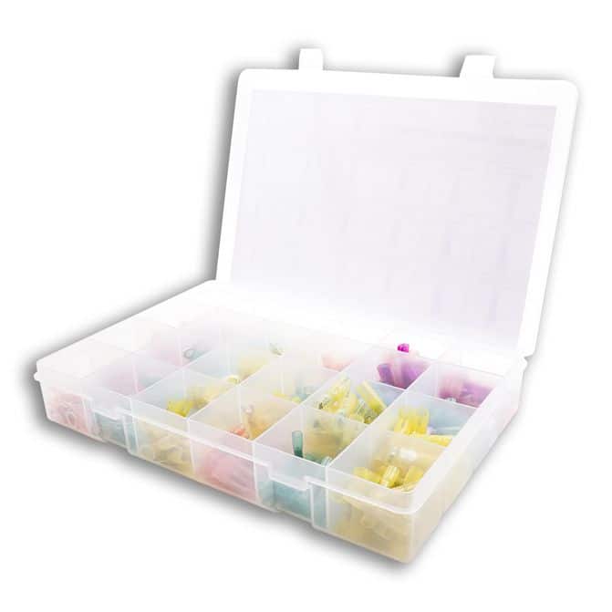 The PrimaTronics 480 Piece Heat Shrink Terminal Kit is the perfect solution for protecting your electrical connections from corrosion, abrasion, vibration and flexing. This kit comes with an encapsulate lining that provides superior protection from chemicals and other environmental elements. It is designed to withstand extreme temperatures and harsh conditions. With this kit, you can be sure that your electrical connections are safe and secure. FleetPride is your First Click in Heavy Duty®. - Adhesive lined heat shrinkable tubing with encapsulate lining