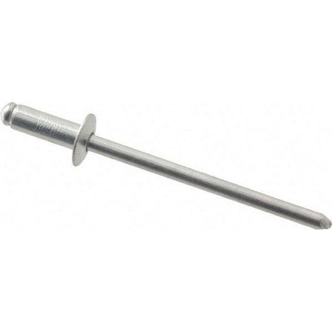 Manufacturer Part Number: ABA43/P500|Rivet Type|Open EndHead Diameter (mm)|Head Diameter (Inch - 0 Decimals)|0.2500Head Diameter (Inch)|1/4Size Code|43Minimum Grip (mm)|Minimum Grip (Inch)|Minimum Grip (Decimal Inch)|0.1260Mandrel Material|AluminumMaximum Grip (Inch)|Maximum Grip (mm)|Maximum Grip (Decimal Inch)|0.1870Minimum Hole Diameter (Decimal Inch)|0.1290Maximum Hole Diameter (Inch)|Maximum Hole Diameter (Decimal Inch)|0.1330Maximum Hole Diameter (mm)|Body Material|AluminumBody Diameter|0.1250Finish|BrightLength Under Head (Inch)|Length Under Head (Decimal Inch)|0.3370Length Under Head (mm)|Head Type|DomeHead Height (Decimal Inch)|0.0400Countersunk Head Angle|Tensile Strength (Lb.)|150.000Standards|IFI 114 Grade 11Rivet Material Grade|5052Mandrel Material Grade|Drill Size (Wire)|#30Drill Size (Inch)|Drill Size (Letter)|Color|Shear Strength (Lb.)|120.00Fastener Standard|IFI 114 Grade 11Body Diameter (Inch)|1/8Product Service Code|UNSPSC Code|