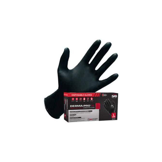 SAS Safety Derma-Pro Disposable Gloves, Nitrile, Powder-free, Black, L