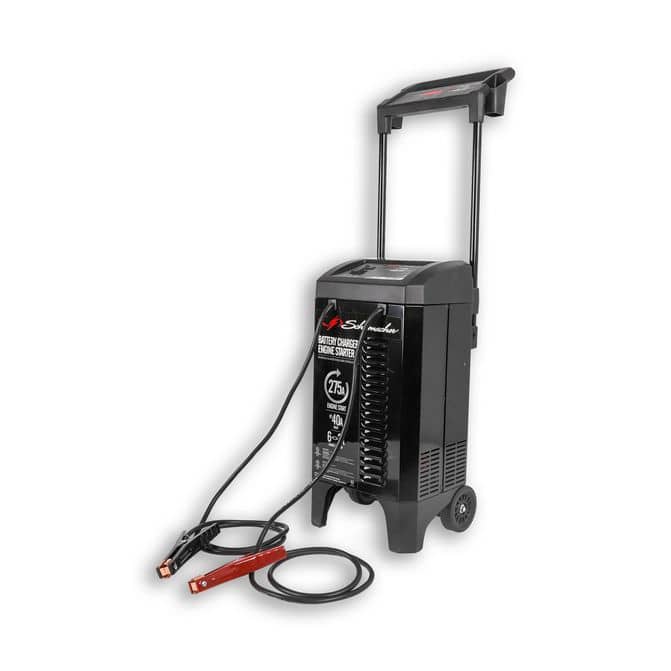 • Ensuring you are Ready for the Road Ahead™, the Schumaker 6/12V 275A Battery Charger features multi-stage charging for added battery life, safety, and precision. This heavy duty battery quickly brings a dead battery back to life, with a 270A engine start that is powerful enough for SUVs, trucks and large engines.