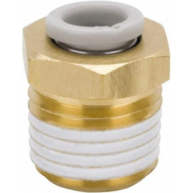 Push-to-Connect Tube Fitting: Connector, 1/2" Thread Brass & Polybut