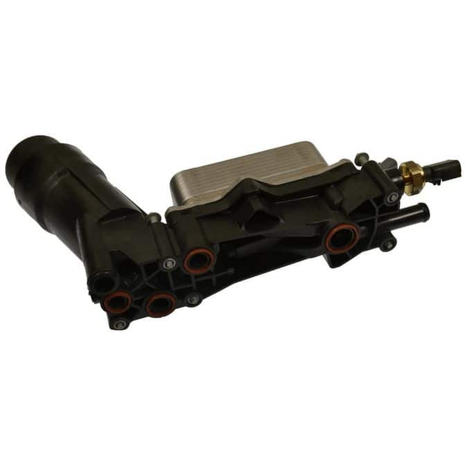 The Standard Ignition OFH101 Engine Oil Filter Housing Kit is engineered to meet the specific requirements of 2014-2016 Dodge and Chrysler V6 engines, ensuring optimal performance and reliability. This fully assembled kit includes all necessary componentsâ€â€oil filter, cap, bypass valve, heat exchanger (cooler), oil pressure sensor, oil temperature sensor, gaskets, and boltsâ€â€eliminating the need to reuse any old parts and simplifying the installation process. Constructed with high-strength, glass-filled nylon plastic, the housing is designed to withstand extreme temperatures and pressures, reducing the risk of cracking and promoting efficient oil cooling. The inclusion of the correct, vehicle-specific oil filter ensures a perfect match, facilitating smoother future oil changes. Detailed, illustrated instructions with torque specifications are provided to assist technicians in achieving a precise and secure installation. By maintaining oil purity, this kit plays a crucial role in preventing engine wear and tear, thereby extending engine life and enhancing vehicle performance. Manufactured in North America, the OFH101 kit reflects Standard Ignition's commitment to quality and durability, offering a reliable solution for fleet maintenance needs.