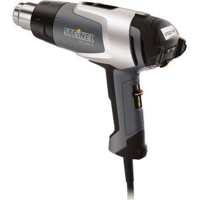 Manufacturer Part Number: 110025598|Product Type|Heat GunType|Heat GunKit Type|Heat Setting (Deg F)|120 to 1200Heat Setting (Deg C)|50 to 650Amperage|13.50Voltage|120Power Rating|1600WAir Flow (CFM)|4.00 to 13.00Air Flow (LPM)|Cord Length (Feet)|6.00Wattage|1600Temperature Settings|VariableHeating Element Material|Mica InsulatedHandle Type|Power Type|ElectricCord Type|CordedApplication|Drying Plaster Work; Heat Shrinking Tubes & Sleeves onto Cables; Thawing Frozen Water or Stripping PaintSwitch Type|Lcd Display|YesStand Included|Case Included|Temperature Lock|Heating Element Replaceable|Housing Material|Includes|HG 2320 E Heat GunOverall Length (Feet)|Maximum Temperature (F) ( - 0 Decimals)|1200Minimum Temperature (Deg F - 3 Decimals)|120UNSPSC Code|27112717