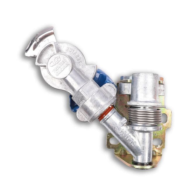 Outfit your semi truck to be Ready for the Road Ahead™ with reliable brake performance, with the Tramec 45° Swivel Aluminum Swing-Away Service Gladhand. Thanks to its straightforward design, this replacement gladhand is able to create an airtight seal between a vehicle and trailer to ensure the proper functioning of the air brakes. Crafted with a simple design to rapidly lock and seal air lines. FleetPride is your First Click in Heavy Duty®. - Permits airflow between a truck and a trailer's braking system