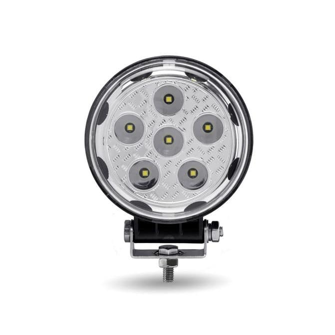 • The TRUX 3000 Lumens Round 13-LED Work Light is resistant to cracks and damage. The aluminum die cast housing provides better heat dissipation, while the 8 side facing diodes provide a 360° field of light. With a white finish and 3000 lumens of light output, this work light is sure to provide the illumination you need. This light is easy to install in any space.