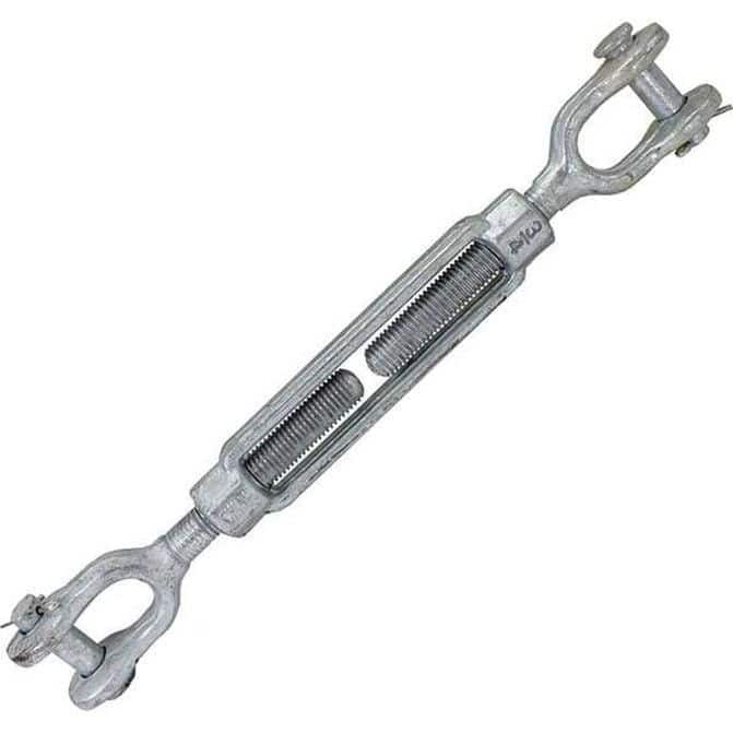 Manufacturer Part Number: JJTBGV34X6|Turnbuckle Type|Jaw & JawWorking Load Limit|5200 lbThread Size|Turn-up|Overall Length|Closed Length|16.609375inOpen Length|24.109375inMaterial|SteelMaterial Grade|Finish|Coating|Body Style|Neck Length|Standards|Additional Information|UNSPSC Code|31162405