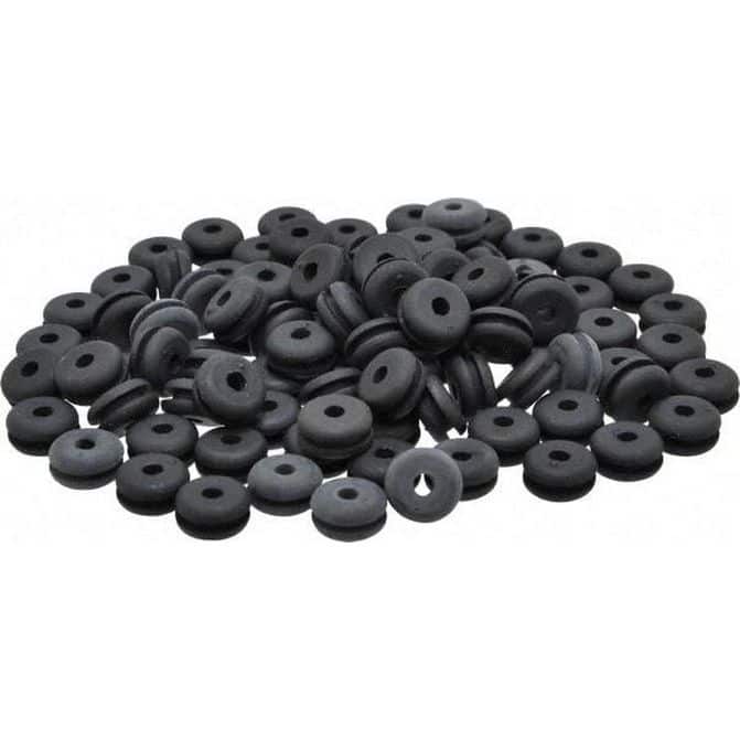 7/16" OD, 7/32" Thick Flexible Grommet Rubber, 5/16" Slot Diam x 100