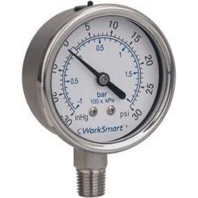 Manufacturer Part Number: 115AL25400|Gauge Type|Type|Scale Measurement Ranges|0 to 400Scale Type|Accuracy (%)|3-2-3Dial Type|AnalogThread Type|NPTBourdon Tube Material|BronzeType of Liquid Filler|Glycerine; WaterMount Type|LowerWetted Parts Material|BrassDial Diameter (mm)|63.55Dial Diameter (Decimal Inch)|Dial Diameter (Inch)|2-1/2Minimum Pressure (psi)|Maximum Pressure (Psi - 2 Decimals)|400Minimum Hg|Maximum Hg|Liquid Filled|YesMinimum Display Range|Maximum Display Range|Case Material Grade|Case Material|Stainless SteelLens Material|Color|Thread Size|1/4 inMinimum Scale Measurement|Maximum Scale Measurement|Gauge Connection Size|For Use With|Standards|Series|Model Number|Minimum PSI|0Additional Information|Display Range|0 to 400Minimum Working Temperature (Deg F)|Maximum Working Temperature (F)|Minimum Working Temperature (Deg C)|Maximum Working Temprature (Deg C)|Product Service Code|UNSPSC Code|
