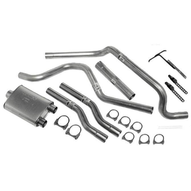 The Walker Exhaust 17313~WK is a 13-inch aluminized steel mandrel-bent dual cat-back exhaust system featuring a Super Turbo muffler. Designed for 1999-2004 Ford F-250 and F-350 models equipped with 5.4L V8 or 6.8L V10 engines, this system enhances exhaust flow and performance. The aluminized steel construction offers superior corrosion resistance, extending the system's lifespan. The mandrel-bent pipes ensure smooth exhaust flow, reducing backpressure and improving engine efficiency. The Super Turbo muffler channels exhaust flow, reduces turbulence, and absorbs unwanted interior resonance, resulting in a mellow tone. This system includes all necessary components for a complete installation, such as pipes, hangers, clamps, and cable ties, facilitating a straightforward, bolt-on replacement without the need for specialized fabrication or welding. The system is engineered to fit 137-inch, 142-inch, 156-inch, 158-inch, and 172-inch wheelbases, excluding chassis cab models. The dual 2.5-inch straight-cut tailpipes exit in the rear on either side of the license plate, providing a clean and aggressive appearance. The aluminized steel construction of the muffler and pipes reduces corrosion, while the internal drainage system minimizes moisture collection, enhancing durability. The system is backed by a limited lifetime warranty and a 90-Day Performance & Sound Guarantee, ensuring long-term satisfaction and performance.