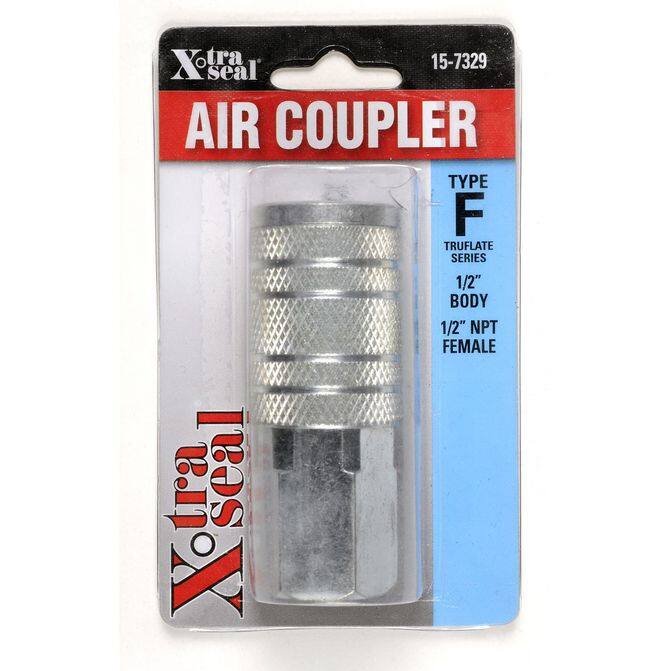 The X-tra Seal 1/2" NPT Female G Automotive Style Air Tool Coupler is designed to minimize air leaks and ensure that your air tools work at their best. This coupler features a maximum operating range of 250 psi. It is made of durable steel and has a blue automotive coupler style. This coupler is perfect for any automotive application and is sure to provide reliable performance.